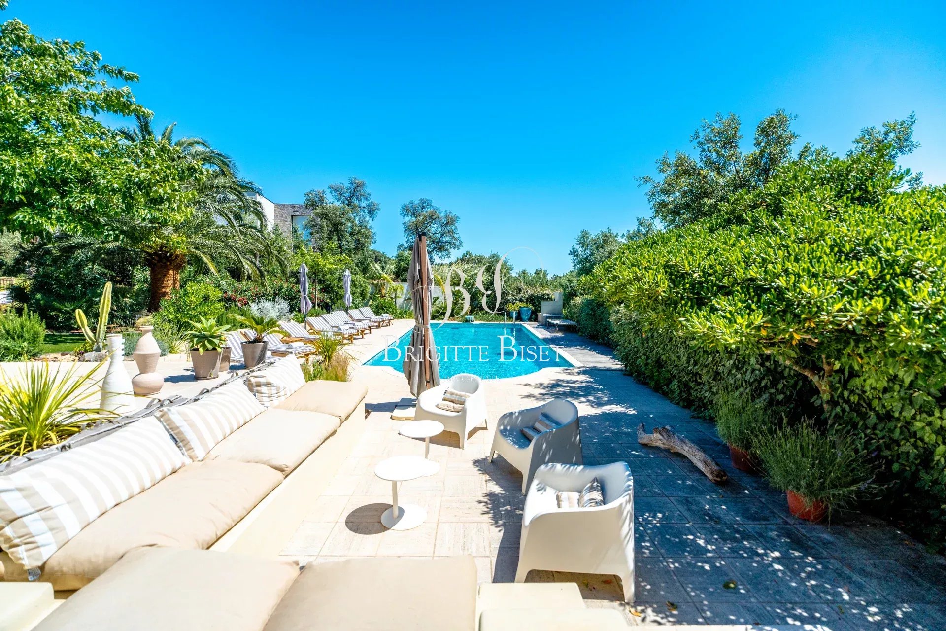 A vendre villa Sainte-Maxime 350m² plusieurs logements sur un terrain boisé de 3.200m², belle piscine de 12x5m au sel, dans un domaine sécurisé, proche des plages de la Croisette. Superbe villa qui comprend : Hall d'entrée, wc invités, vaste séjour avec cheminée, cuisine ouverte sur la salle à manger, 2 chambres en suite avec salle de bains avec douche et wc séparé, 2 autres chambres, salle d'eau avec wc et une chambre indépendante avec salle d'eau et wc. 2 appartements 2 pièces indépendants en duplex qui comprennent pour chaque T2: séjour, cuisine ouverte équipée, chambre en mezzanine, salle d'eau et wc séparé. Un appartement 2 pièces en rez de jardin indépendant : Séjour, cuisine us équipée, chambre, salle d'eau et wc séparé.