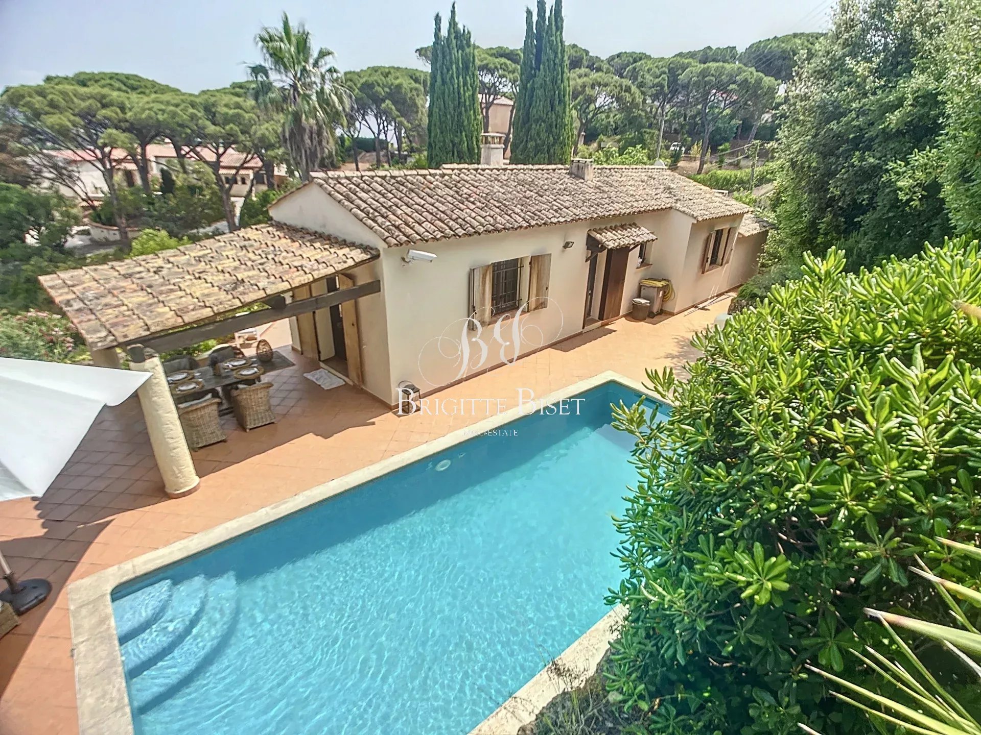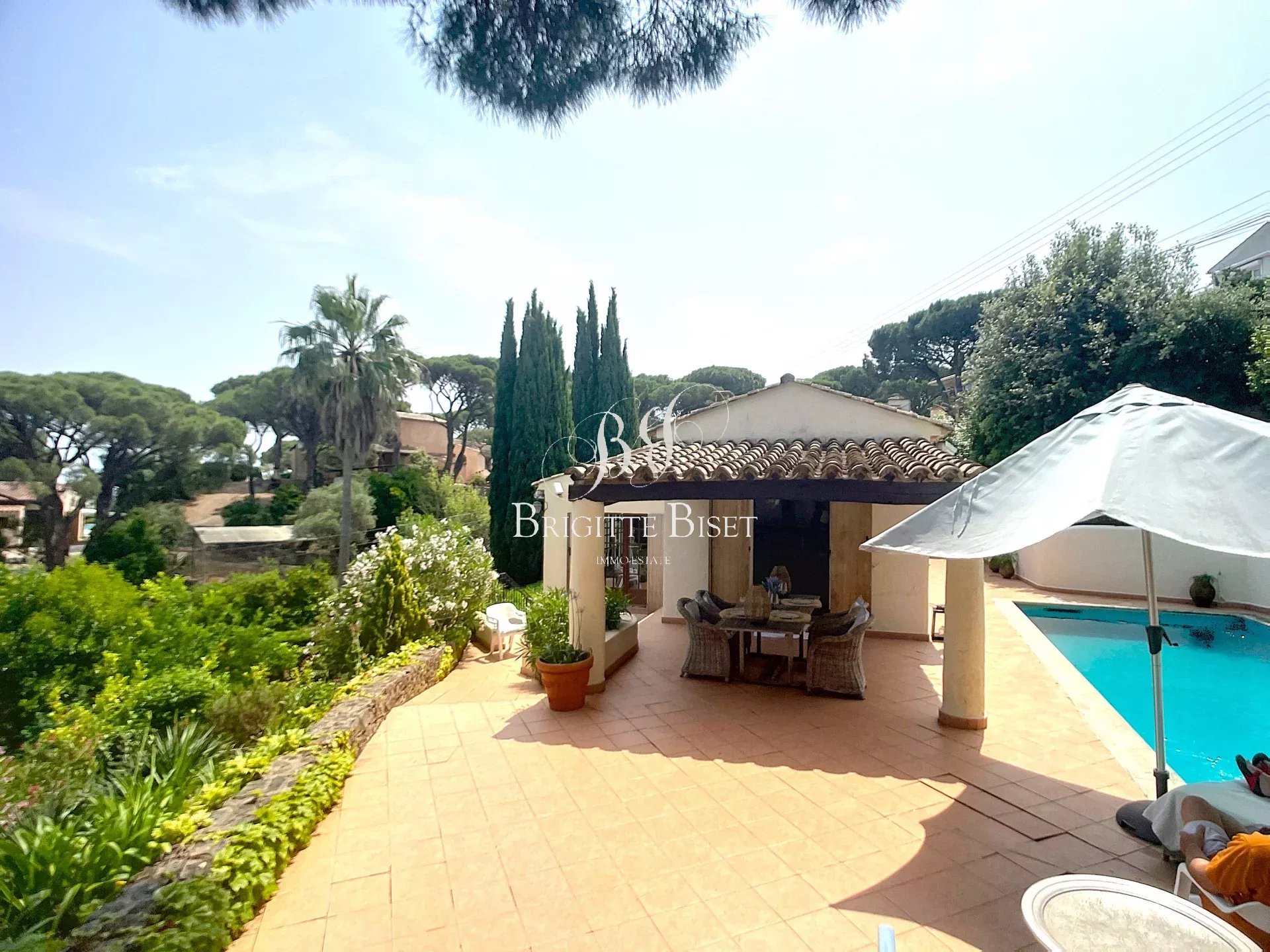 Villa à Sainte Maxime vendue dans notre agence, proche plage de la Nartelle à pied et proche du domaine du Golf. Maison provençale d'environ 166m² total un jardin de 1.485m² piscine de 9x4m et garage et caves. Cuisine moderne et salle à manger, séjour, 4 chambres, 2 salle de douches et 2 toilette. Climatisation réversible, vue dégagée sur la verdure. A rafraichir. Possibilité de créer une 5eme chambre avec douche. sous offre