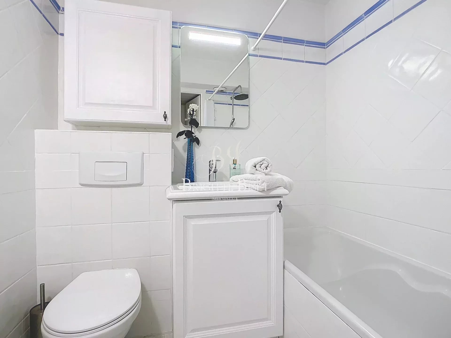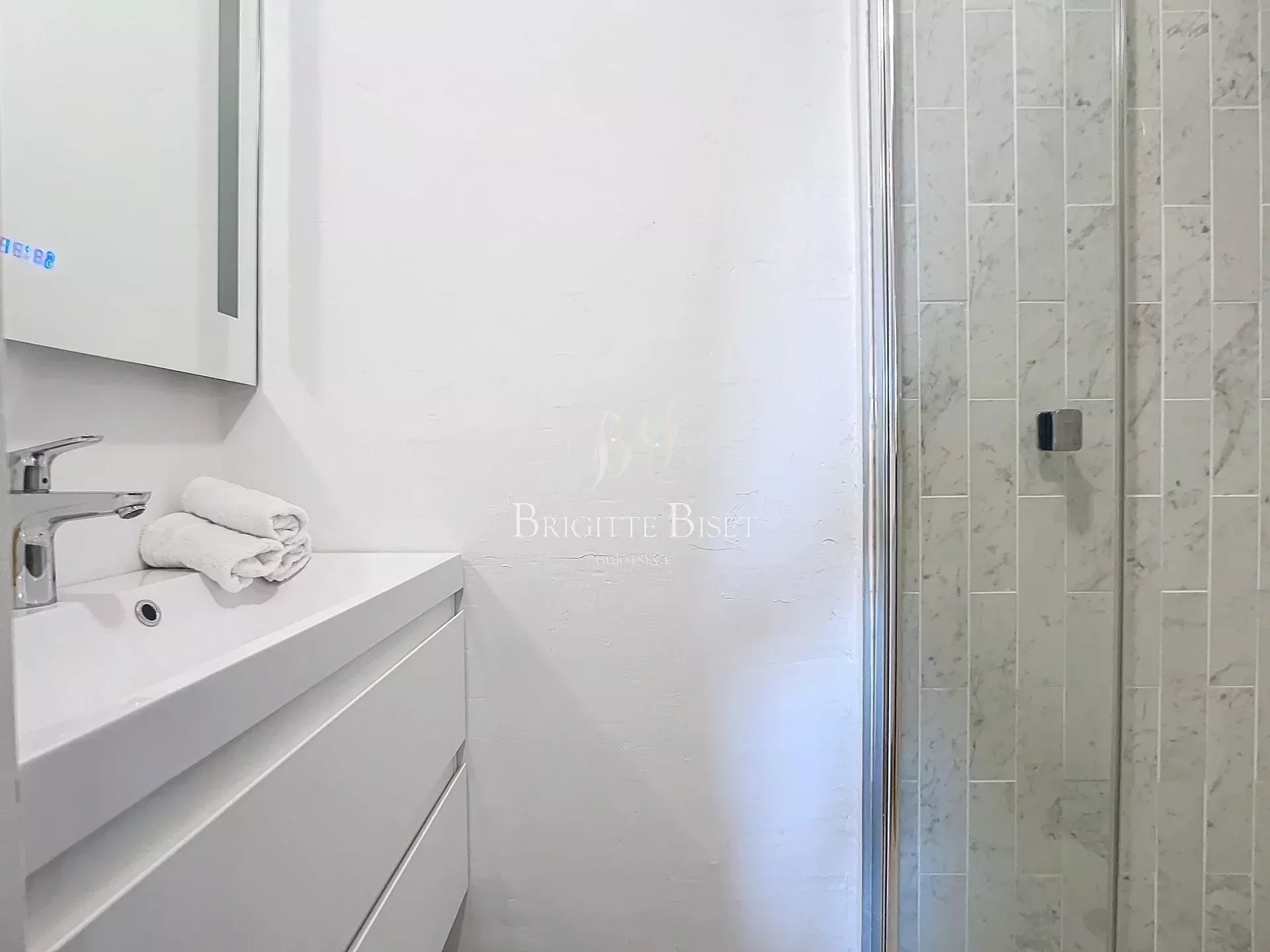 Te koop in Sainte Maxime nabij centrum en strand. Dit 3 slaapkamer apartment van 58m² ligt in een afgesloten residence met zwembad, heeft een kelder en afgesloten parking binnen in het gebouw. Entrée hal, huiskamer met terrasse van 12m² en open volledig uitgeruste keuken, 3 slaapkamers, badkamer met toilet, een douche en een 2e toilet. Air conditioning warm/koud, het apartement is in perfecte staat. Ligt op een laatste verdieping met lift.
